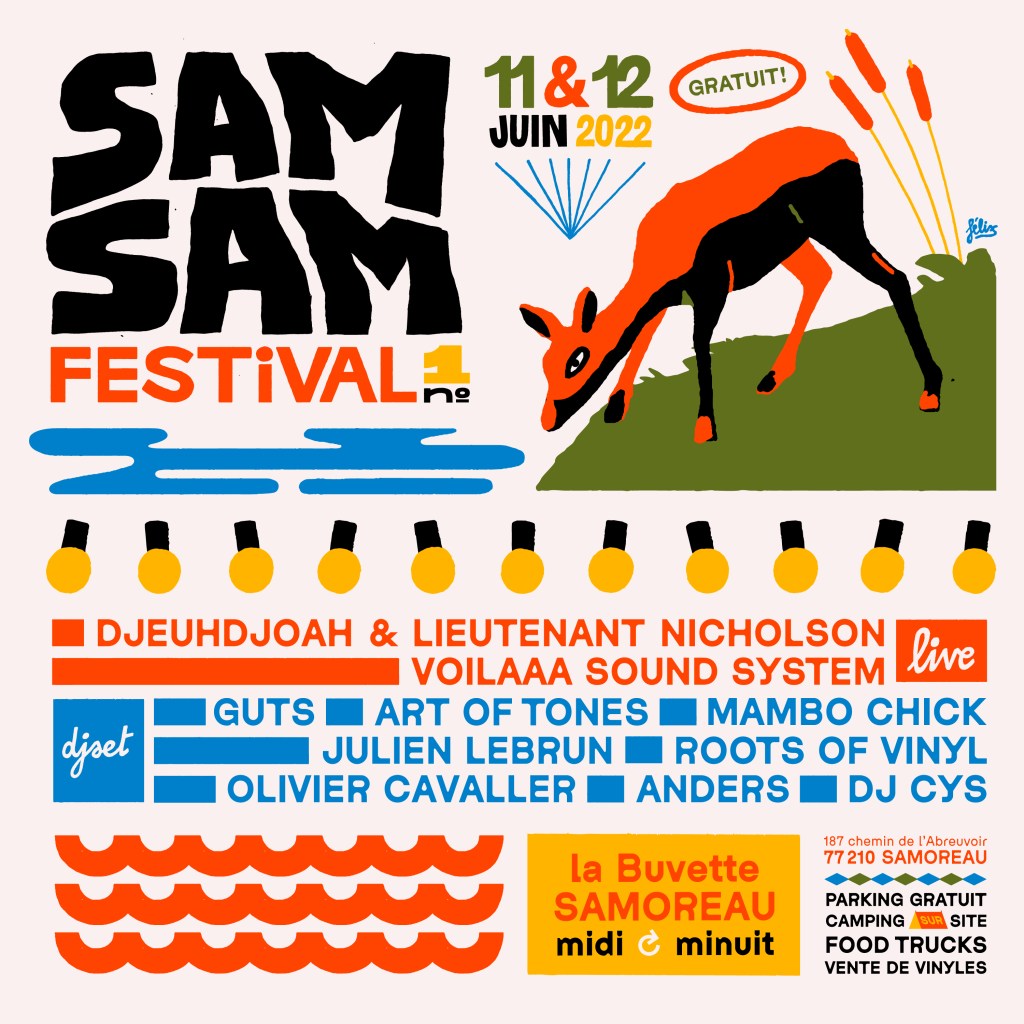 Ca se passe à la buvette de Samoreau. Venir à pied ou en vélo serait idéal, mais parking possible + navettes de la gare de Fontainbleau Avon. Possibilité de camper sur place (sur reservation), et de digger du vinyle!